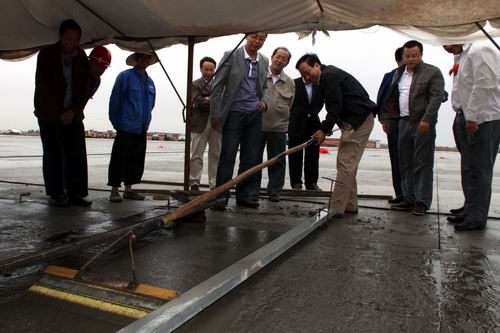 2010年8月20日上午10時,金昌機場飛行區(qū)停機坪混凝土道面工程順利封倉。甘肅省交通運輸廳、金昌市政府、甘肅機場建設(shè)投資管理公司、甘肅機場項目建設(shè)指揮部及施工單位等有關(guān)單位領(lǐng)導(dǎo)現(xiàn)場見證了道面工程順利封倉的時刻。