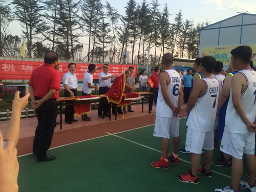 建設(shè)單位指揮部史副指揮長(zhǎng)、工程部趙部長(zhǎng)、監(jiān)理中企建發(fā)公司隋總為獲得冠軍、亞軍、季軍的籃球隊(duì)頒獎(jiǎng)