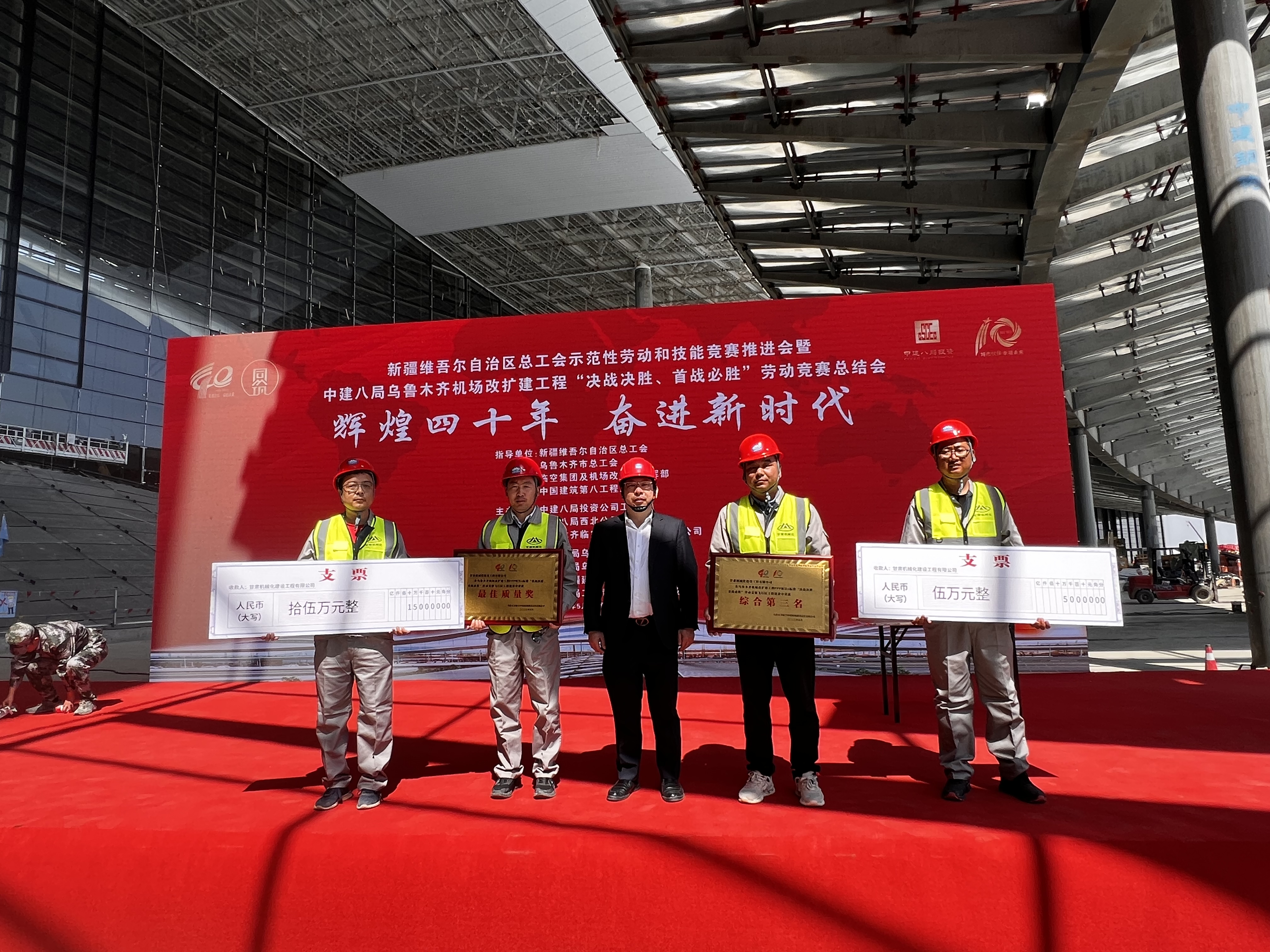 5月10日,新疆維吾爾自治區(qū)總工會示范性勞動和技能競賽推進會暨烏魯木齊機場改擴建工程“決戰(zhàn)決勝、首戰(zhàn)必勝”勞動競賽總結會上,我司烏魯木齊機場改擴建工程項目部榮獲飛行區(qū)工程建設綜合第三名及最佳質量獎;同時張振華同志榮獲“優(yōu)秀共產黨員”榮譽稱號,鄧小剛同志與嚴文明同志榮獲“優(yōu)秀個人”稱號!