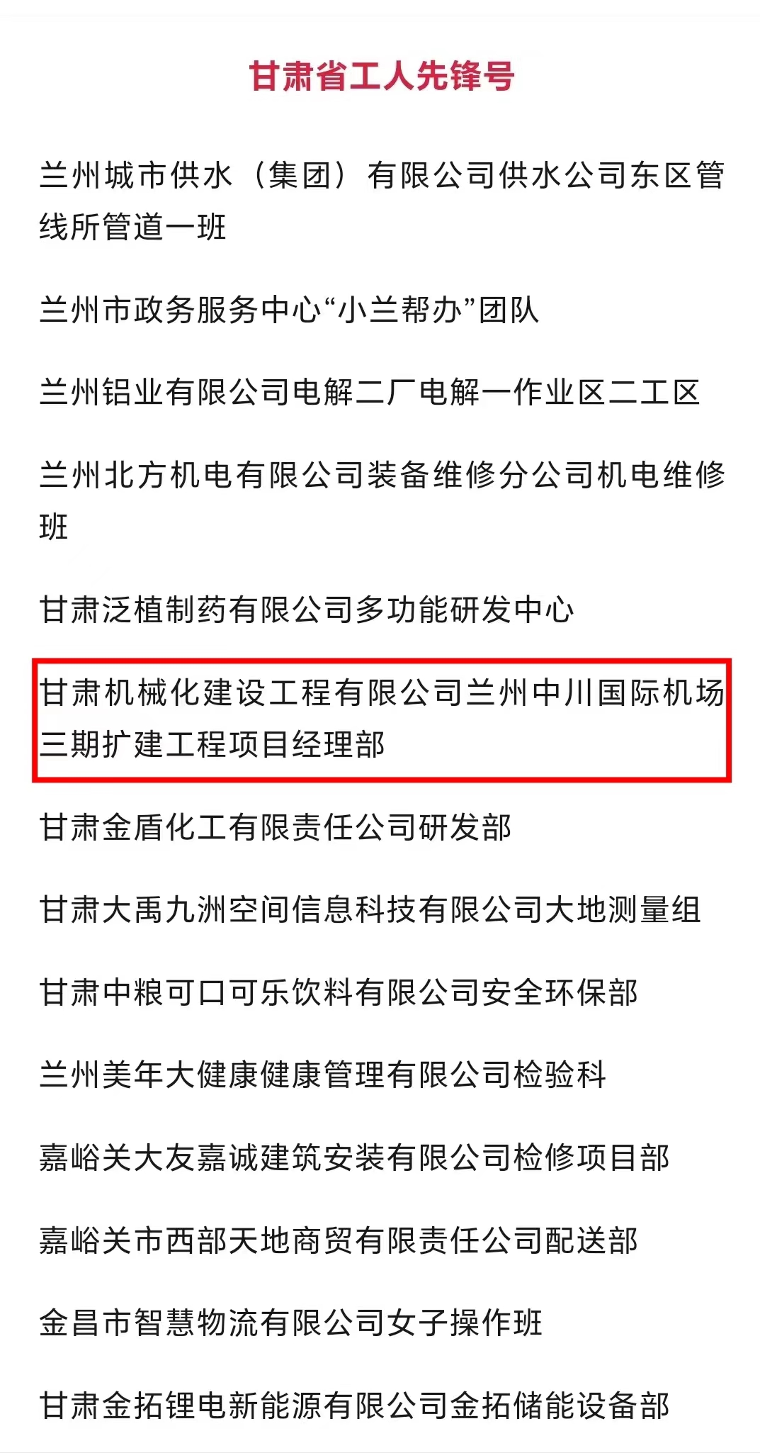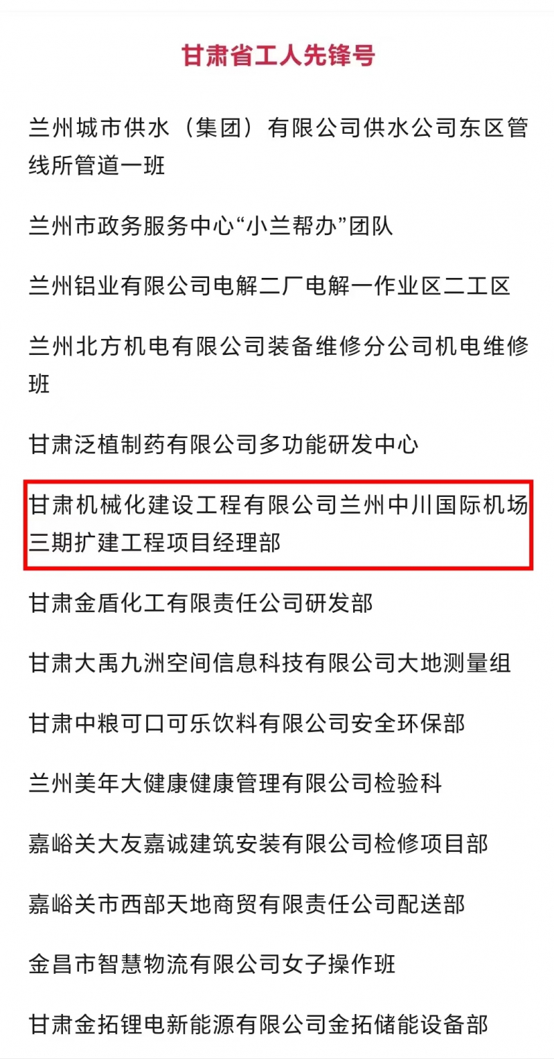 近日,甘肅省總工會發(fā)布了2024年甘肅省“五一勞動獎和甘肅省工人先鋒號”擬表彰對象的公示。我司蘭州中川國際機(jī)場三期擴(kuò)建工程項(xiàng)目經(jīng)理部被授予“甘肅省工人先鋒號”,該獎的獲得既是對項(xiàng)目團(tuán)隊長期拼搏奮斗的肯定,也是對公司“和諧共進(jìn)、追求卓越”企業(yè)精神的肯定。