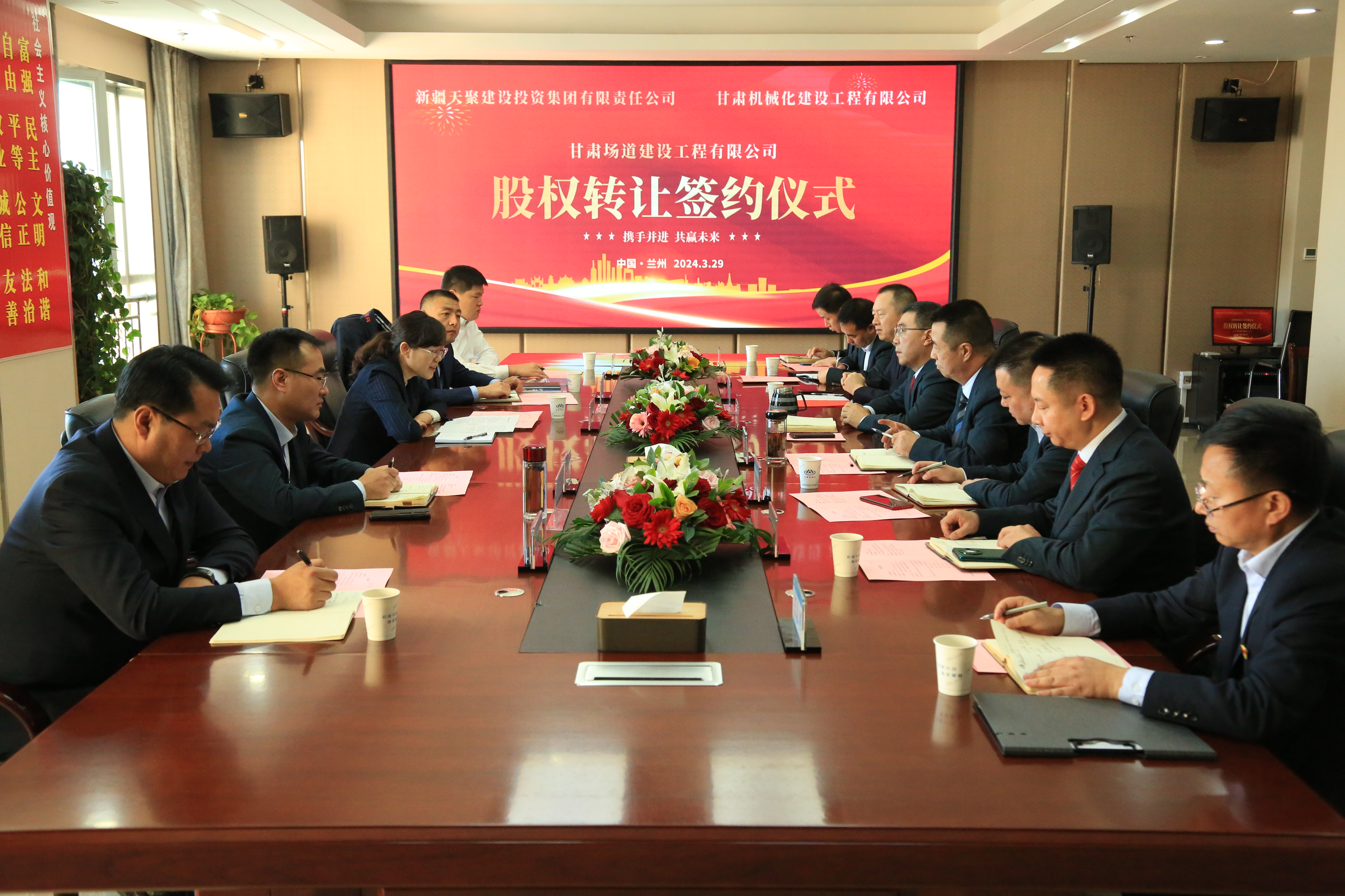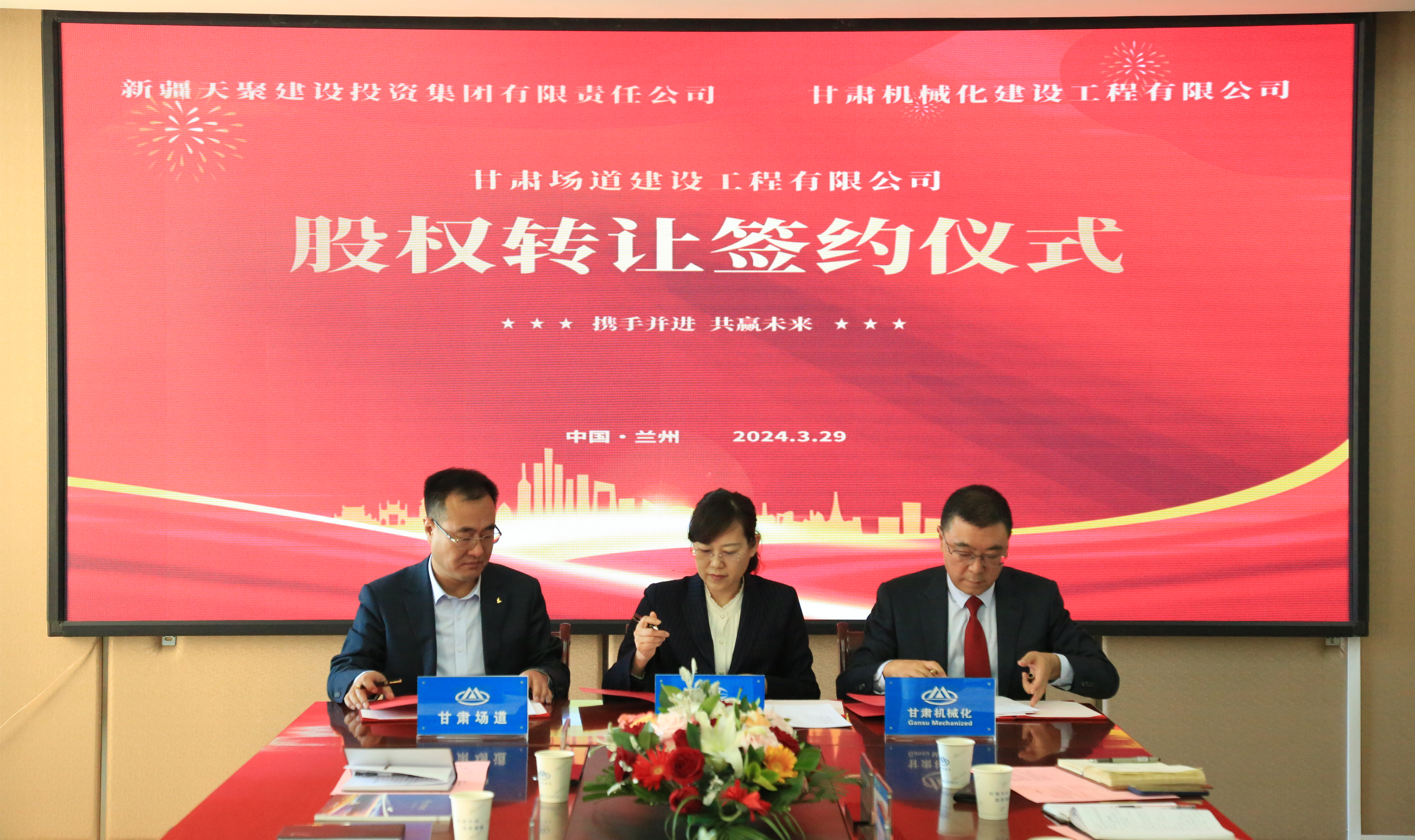 2024年3月29日,天聚建投集團(tuán)與我司在金城蘭州舉行了甘肅場(chǎng)道公司股權(quán)轉(zhuǎn)讓協(xié)議簽約儀式。